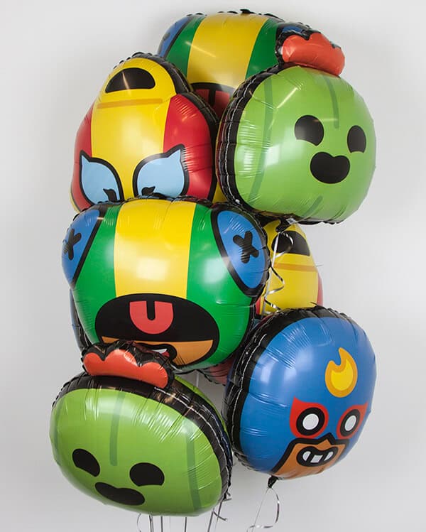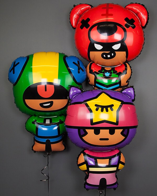 • Букеты шаров: Мы предлагаем разнообразные букеты живописных шаров с изображениями различных героев Brawl Stars. Вы можете выбрать своего любимого персонажа или создать свой собственный набор, который будет гармонировать с дизайном вашего праздника.